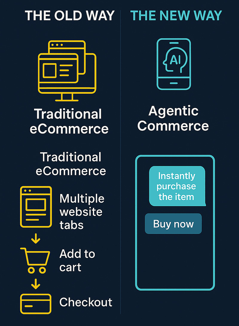 Here’s the reality: a new class of commerce is emerging. One where the transaction interface is an AI agent, not necessarily a website or app. The substance of the sale shifts from human-led browsing to agent-led procurement, encompassing discovery, evaluation, checkout, and fulfillment, all of which are handled in the background.