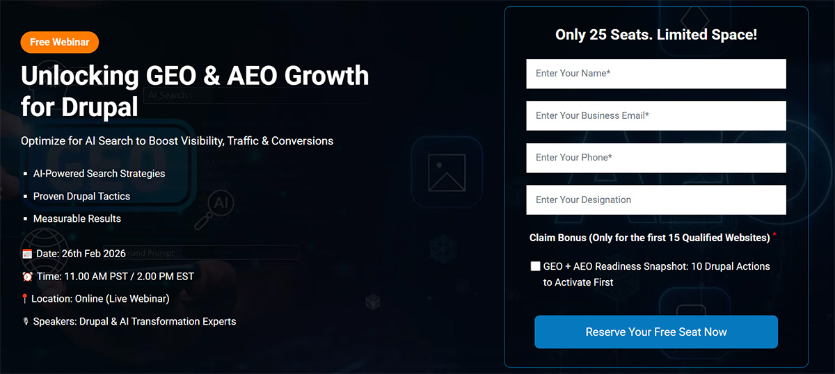 Don’t miss out on the chance to future-proof your Drupal business by harnessing the power of GEO and AEO. Secure your spot and claim your free bonus!